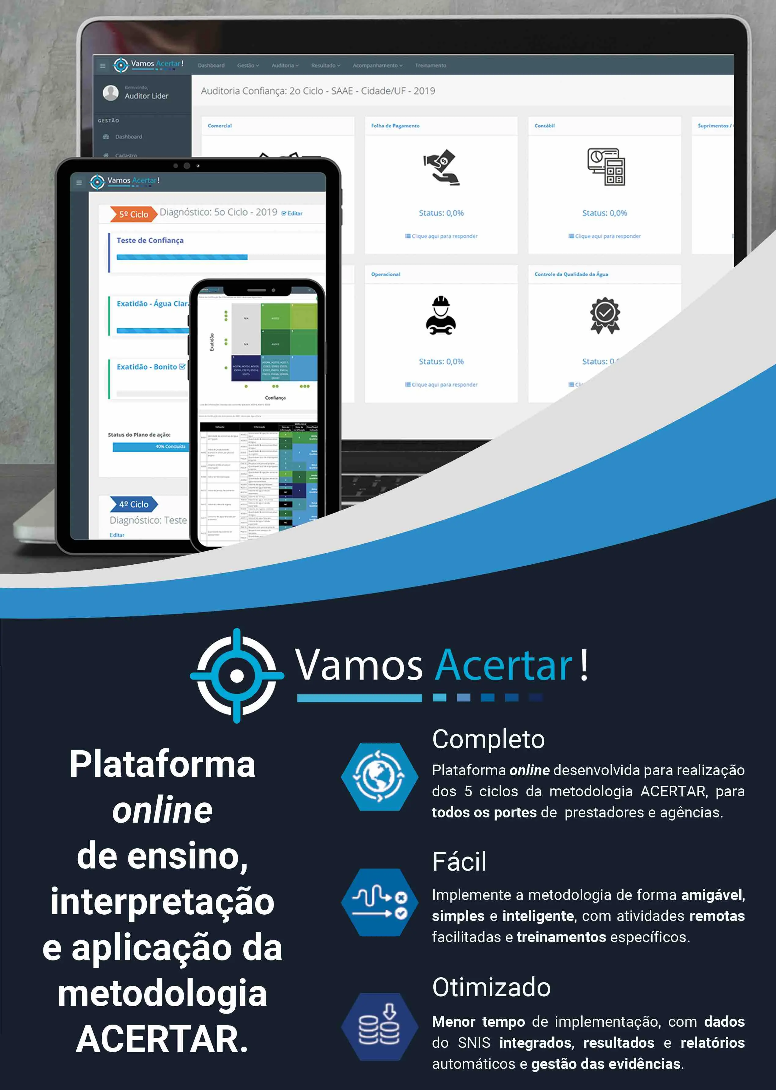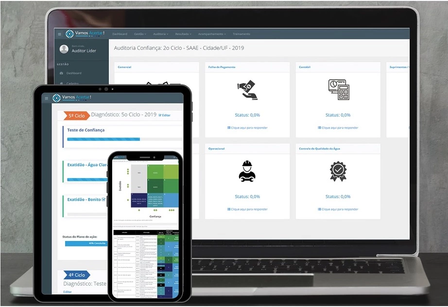 Nós te ajudamos a identificar de forma amigável, rápida e online, o seu nível de confiança e exatidão das informações e a melhor entender os processos de negócio que implicam nas informações fornecidas prestadores de serviços de saneamento básico.